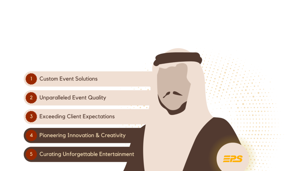 At EPS, we deliver exceptional event experiences in Saudi Arabia through meticulous planning, flawless execution, and unwavering dedication to client satisfaction. We foster a culture of innovation and creativity, empowering our team to develop unique solutions that exceed expectations and leave a lasting impression
